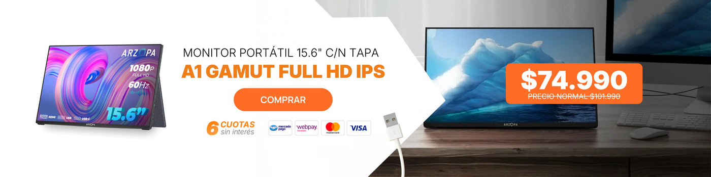 Monitor Portátil 15.6" Arzopa A1 GAMUT Full HD IPS con Tapa Protectora