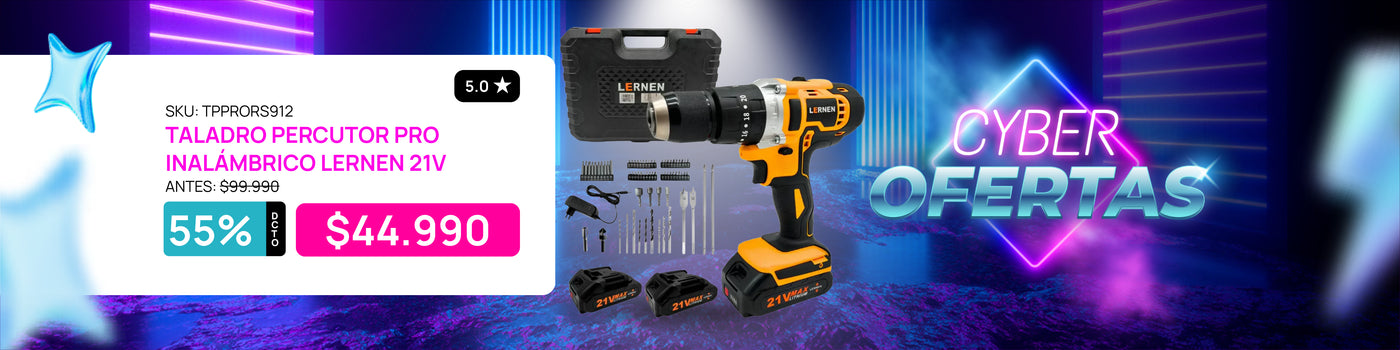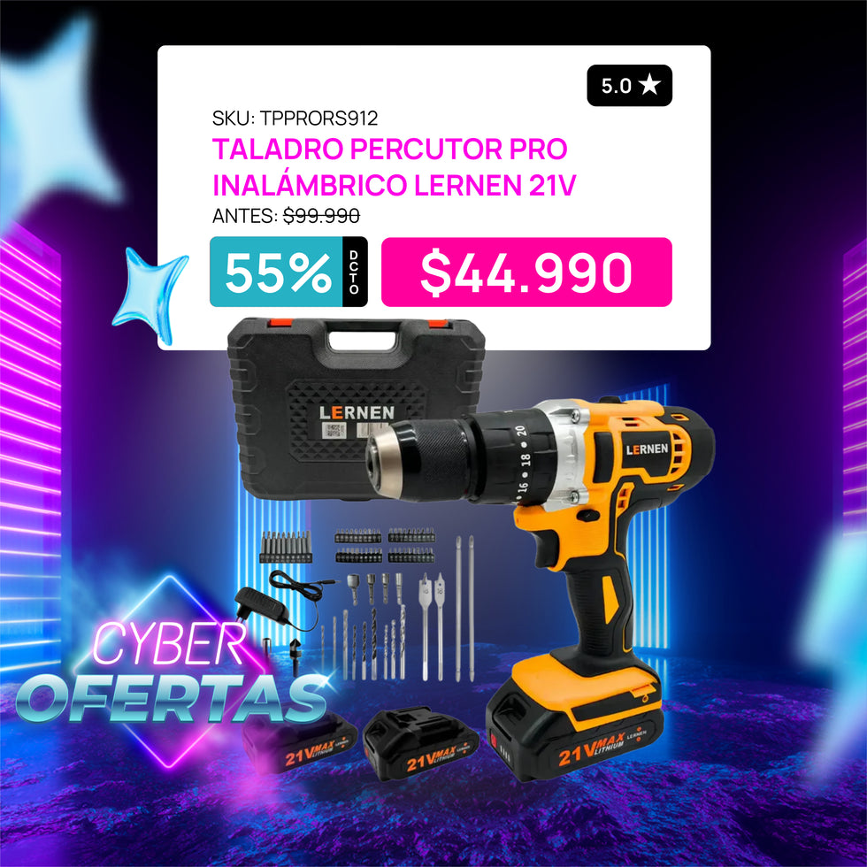 Taladro Percutor Pro Inalámbrico LERNEN 21V + 2 Baterías + Acc