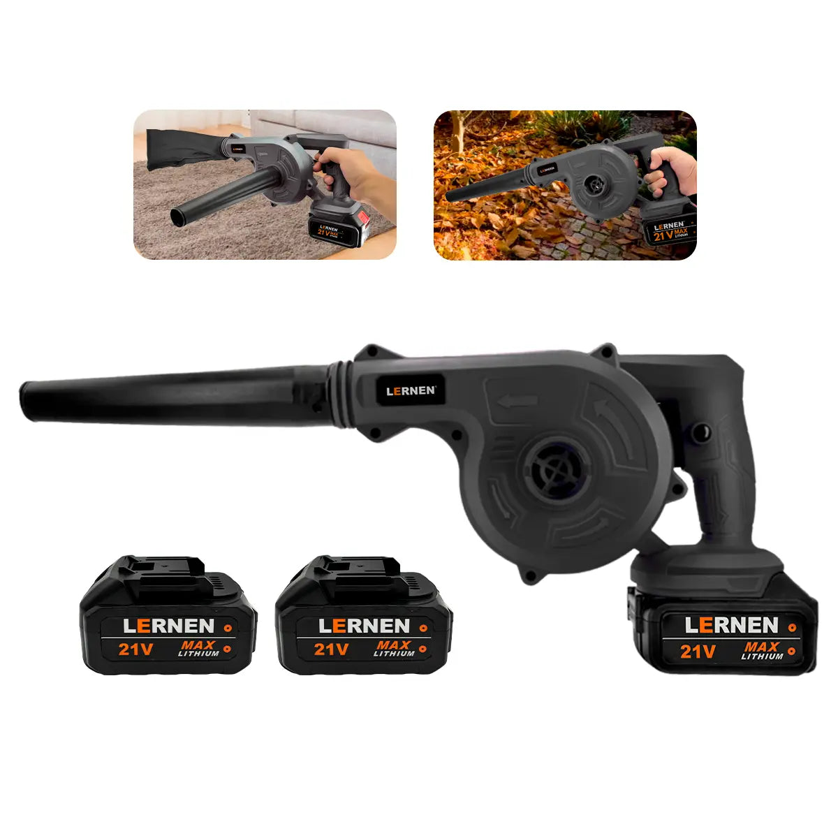 Sopladora y Aspiradora Inalámbrica Lernen con dos baterías incluidas.