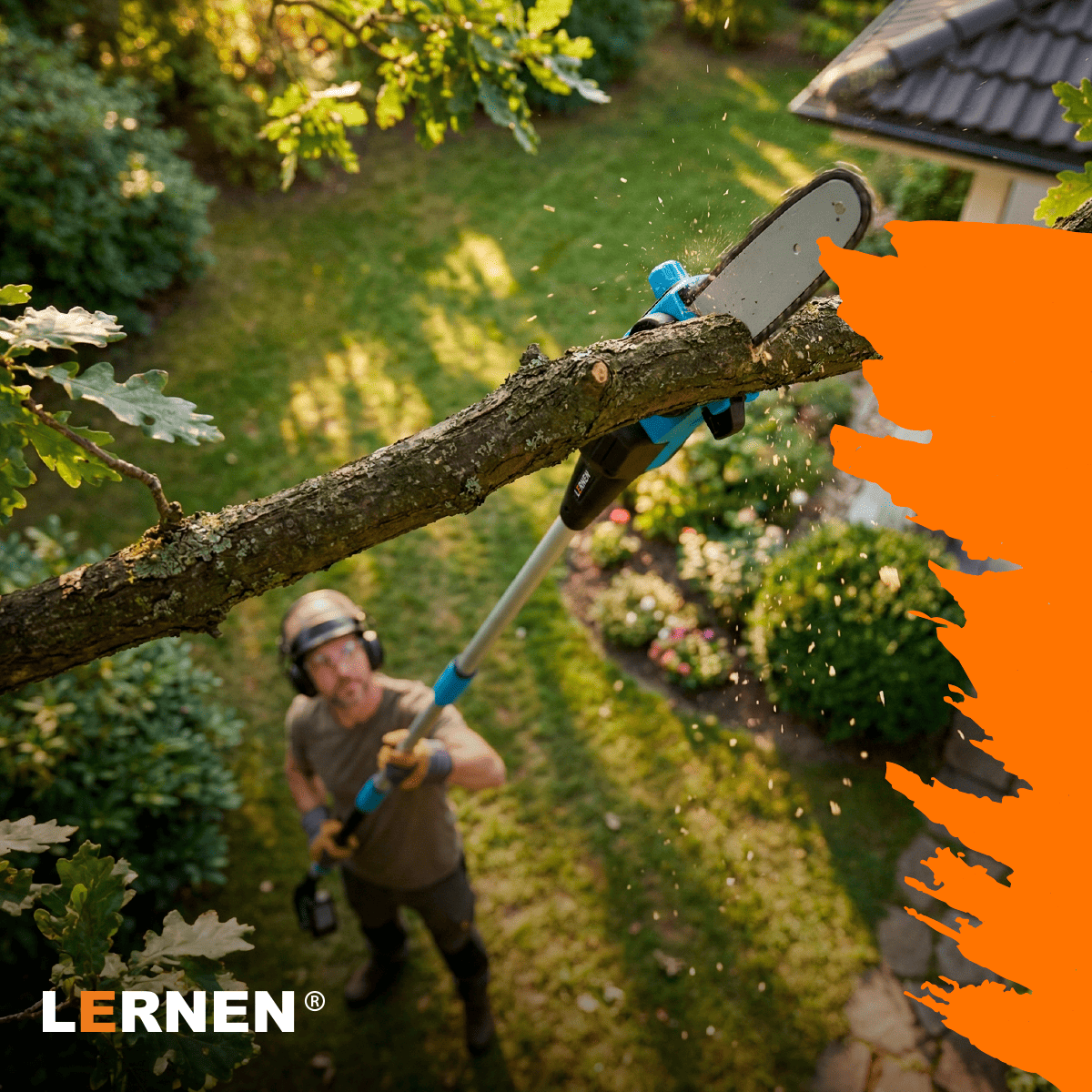 La Motosierra Telescópica Inalámbrica Brushless Lernen es la solución perfecta para trabajos de poda en altura de forma segura y eficiente.