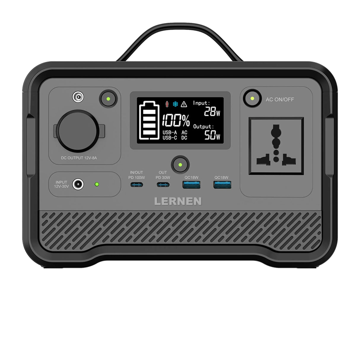 La estación de energía portátil Lernen 350W con peak de 700W es una power station compacta y silenciosa, perfecta para apagones, camping y como respaldo eléctrico en el hogar. No genera electricidad: almacena energía y la entrega de forma estable a través de múltiples salidas AC, DC, USB y Type-C, ideales para alimentar pequeños electrodomésticos y cargar dispositivos.