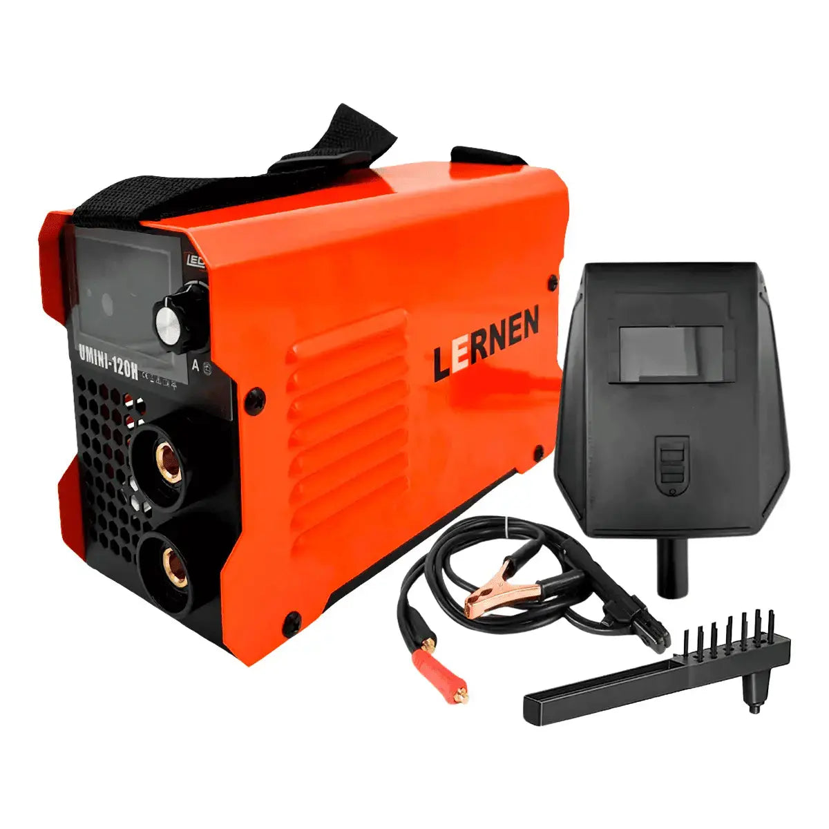 Soldadora Inverter Lernen: ¡Suelda con precisión y confianza! Nuestra soldadora inverter es la herramienta perfecta para tus proyectos. Con su diseño portátil y ligero, podrás llevarla a donde necesites. Su potente salida de 120A y su amplia gama de electrodos te permiten trabajar en una variedad de materiales. ¡Incluye máscara de soldar, cables y cepillo limpiador para que puedas empezar a soldar de inmediato!
