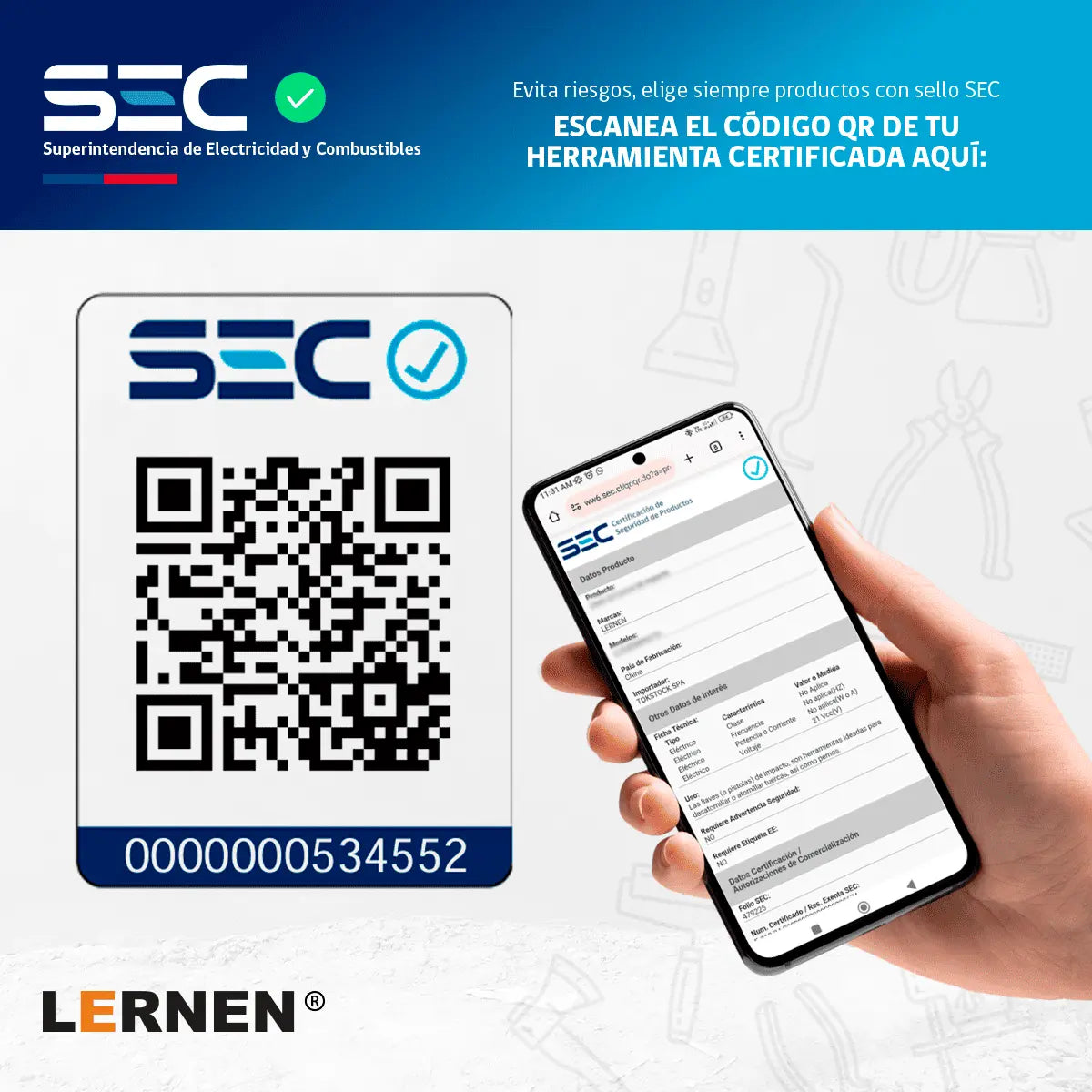 Taladro Percutor Eléctrico 13mm LERNEN + Accesorios