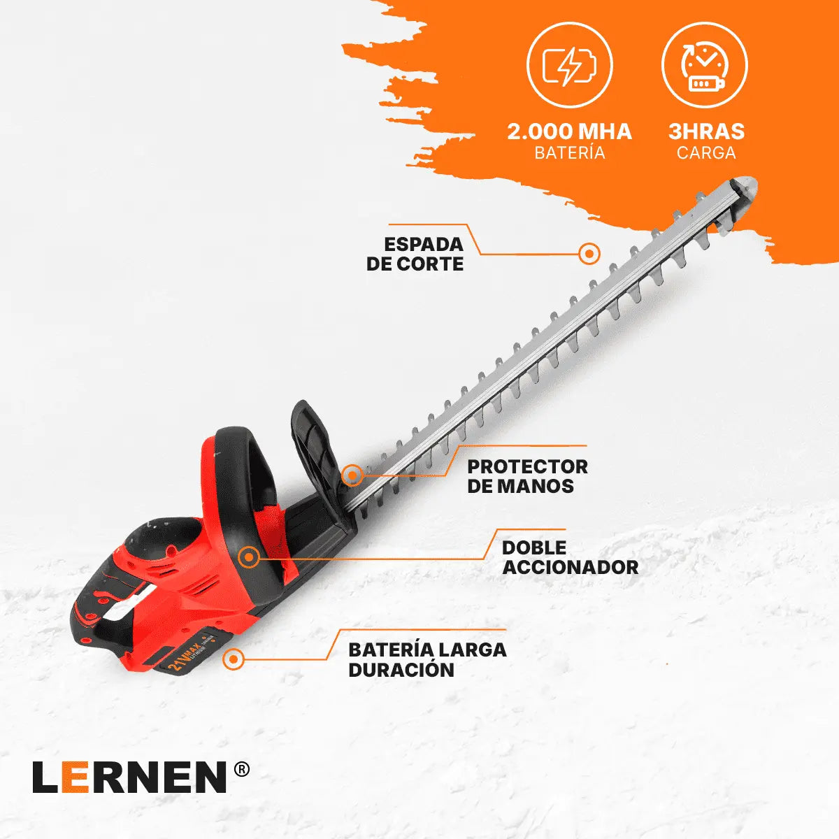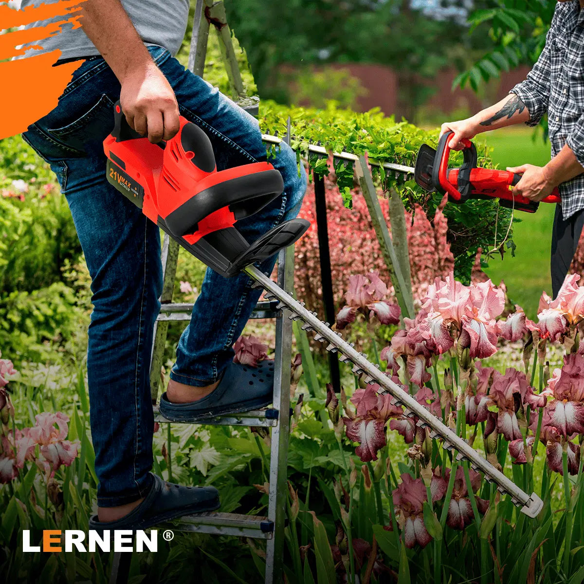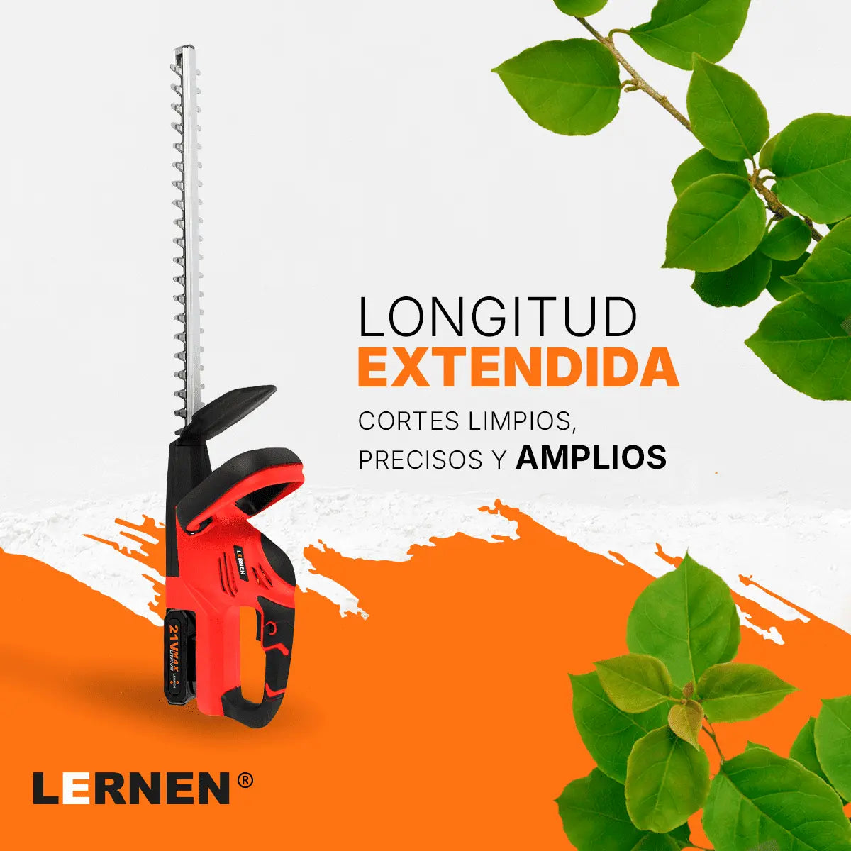 El Corta Setos Inalámbrico a Batería XL de Lernen es la herramienta perfecta para mantener tu jardín impecable. Con una hoja de 510 mm de largo, podrás cortar setos y arbustos de forma rápida y precisa. Su batería de 2.000 mAh se carga en solo 3 horas, ofreciéndote una autonomía óptima para completar tus tareas de jardinería.