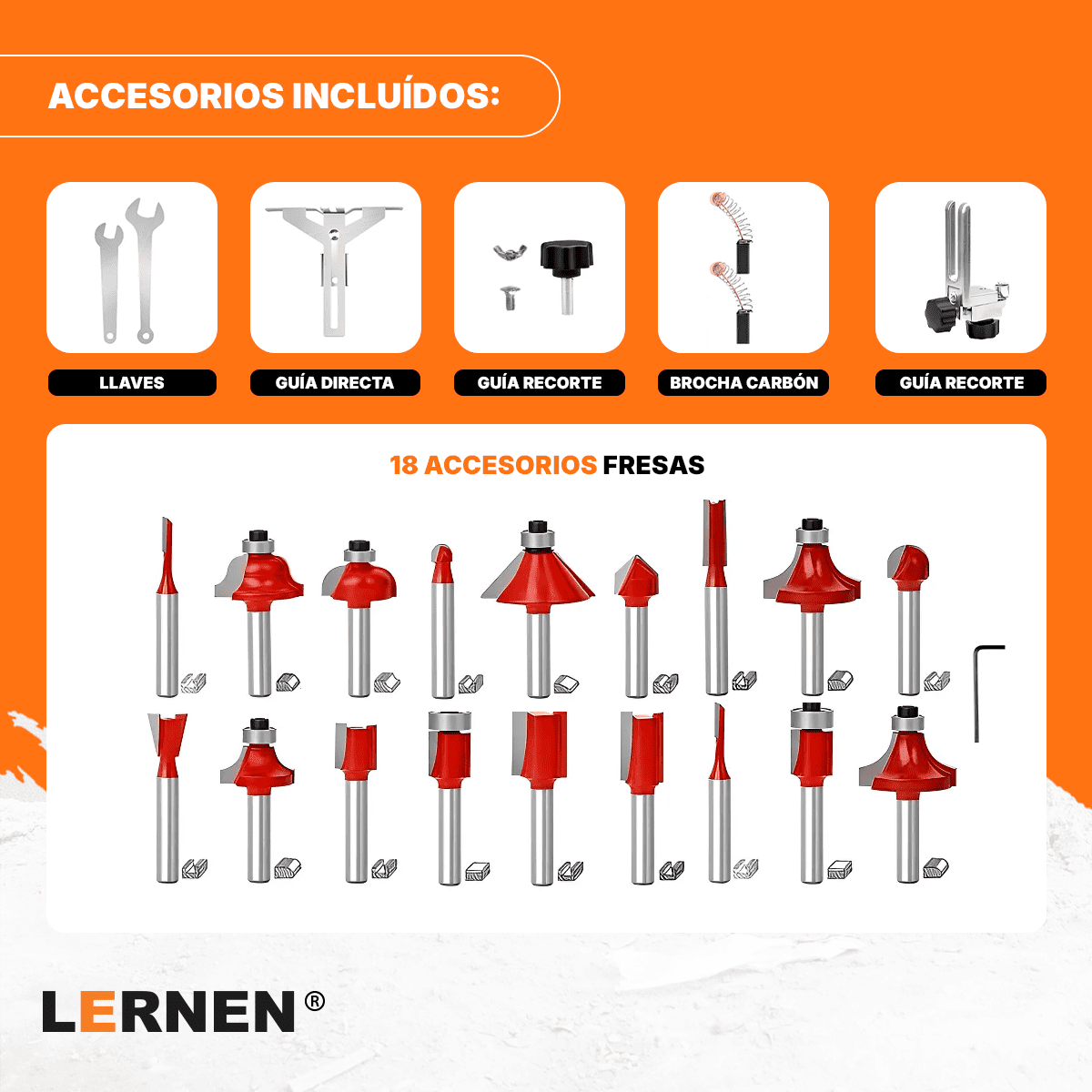 Fresadora Router Tupi 6-6.35mm LERNEN- 220v 50hz - 550w + 18 Fresas