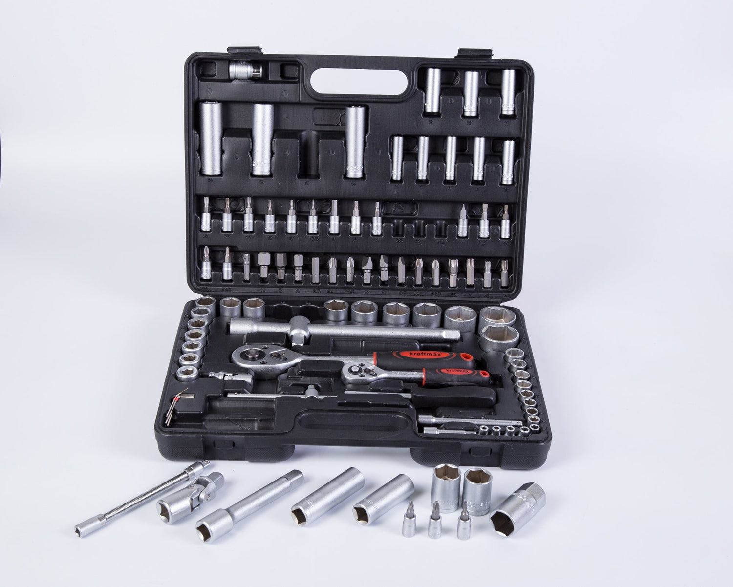 • Incluye dados, puntas, barras de extensión, llaves y adaptadores