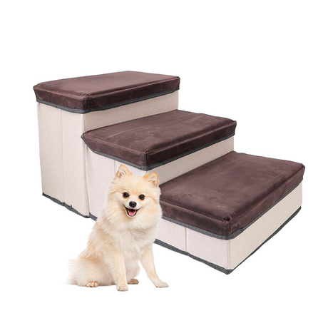 Escalera Para Perros Y Gatos Con Estantes Guardadores Cafe