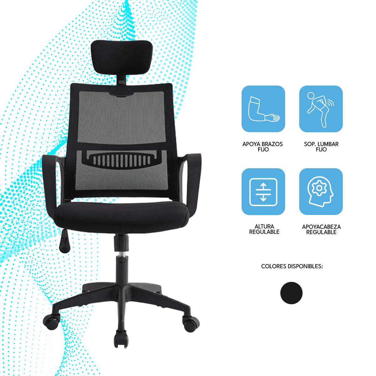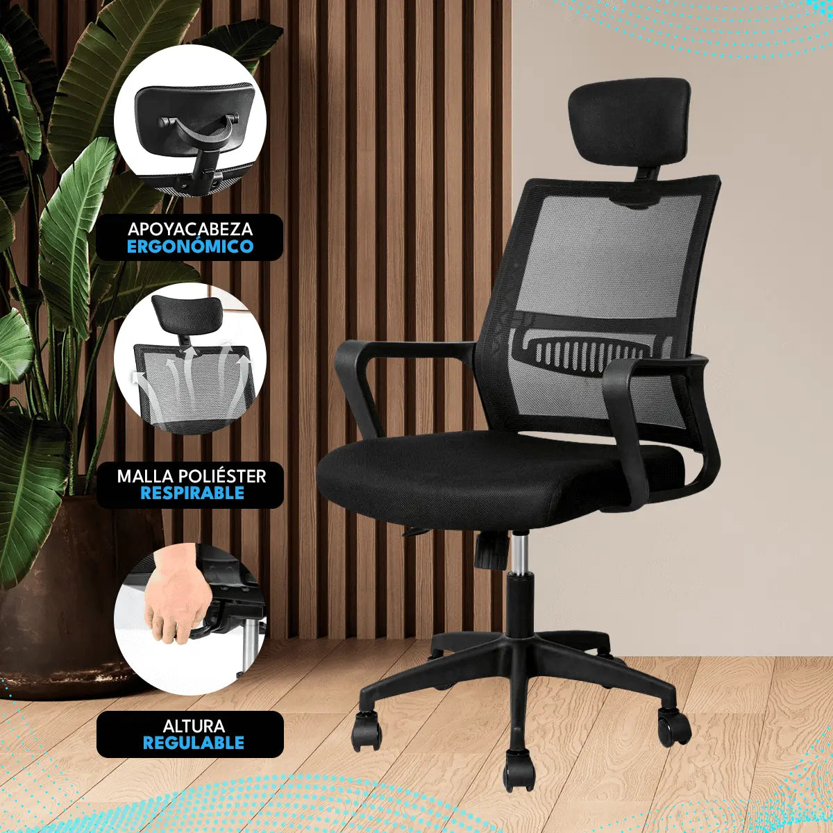 Silla de Oficina y Escritorio Ejecutiva Ergonómica Con Apoyacabeza y reposa brazos, ideal para la casa y la oficina