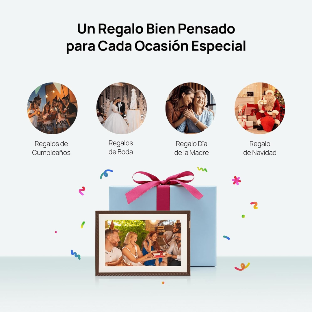 Marco de foto digital inteligente Arzopa de 10.1" y 32 gb, olvídate de los antiguos cuadros, muestra todas tus fotos.