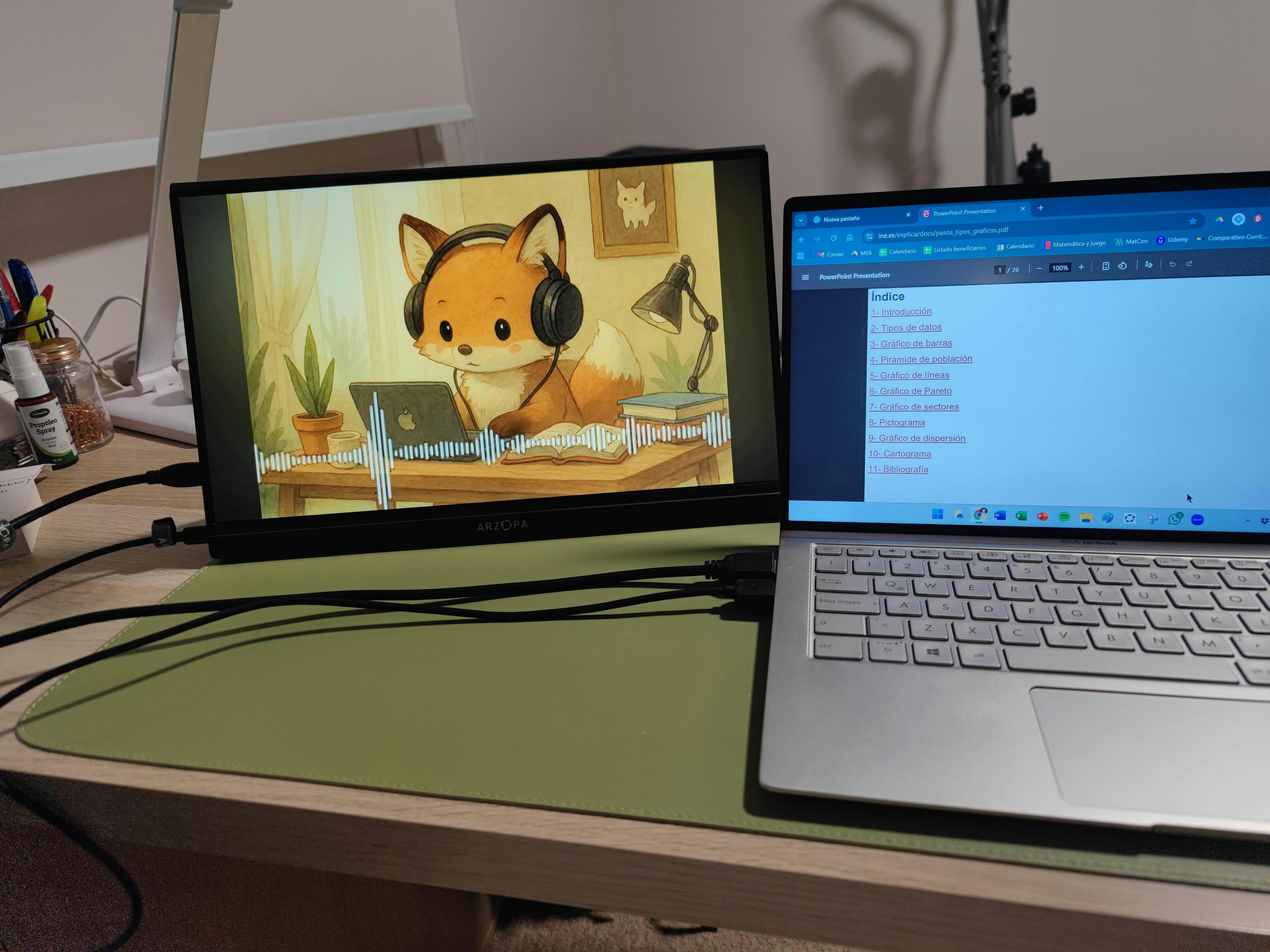 El monitor portátil Arzopa de 15.6" Full HD de 1080p es ligera y compacta, con múltiples opciones de conexión, incluyendo puertos USB, USB-C y HDMI. Ofrece una experiencia visual inmersiva y es compatible con una amplia gama de dispositivos. Es ideal para ampliar el espacio de trabajo, ver películas en alta definición o jugar juegos con gráficos intensos en cualquier lugar.